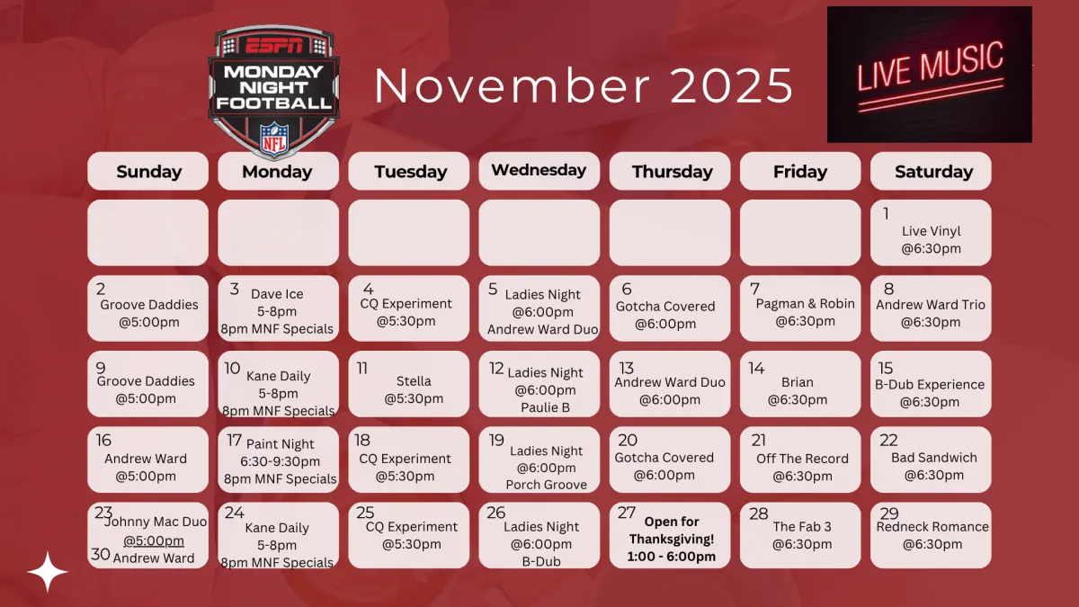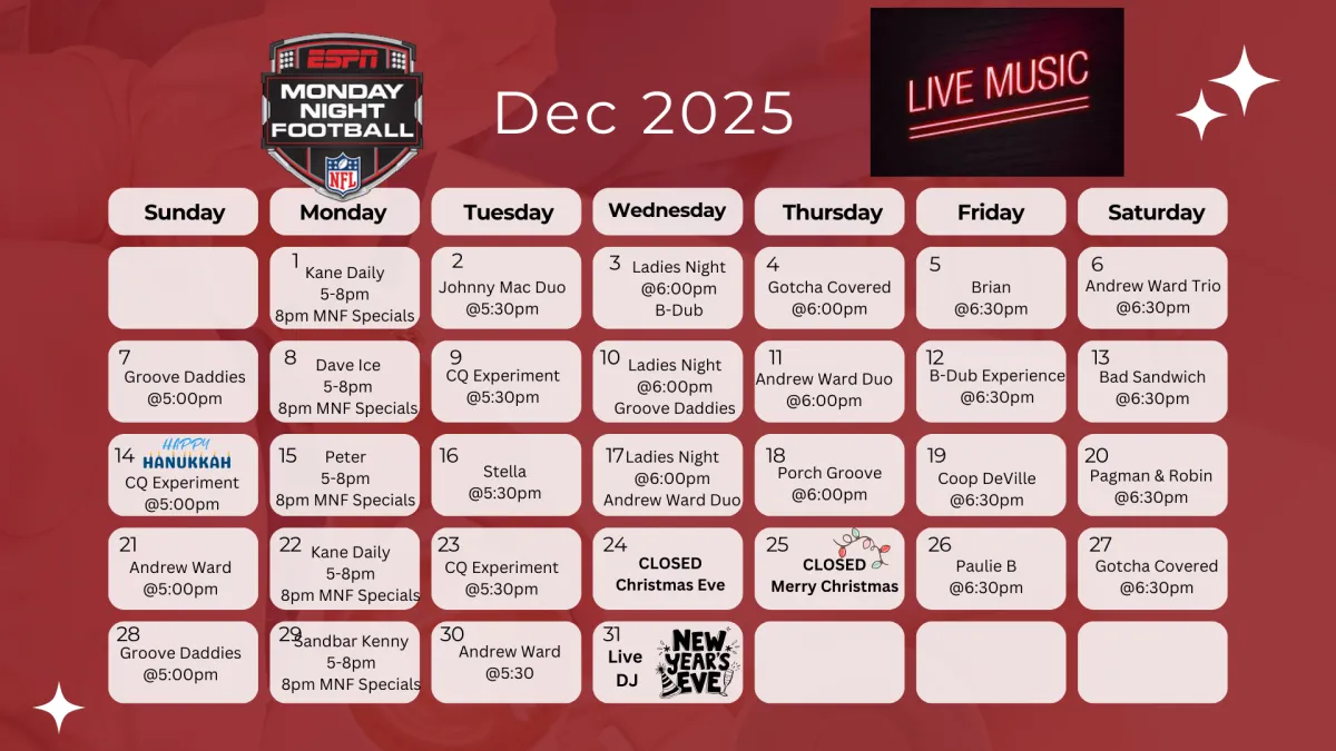 *Kitchen hours. Bar stays open later.